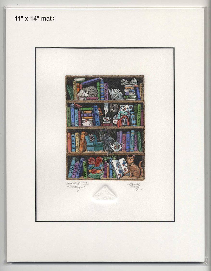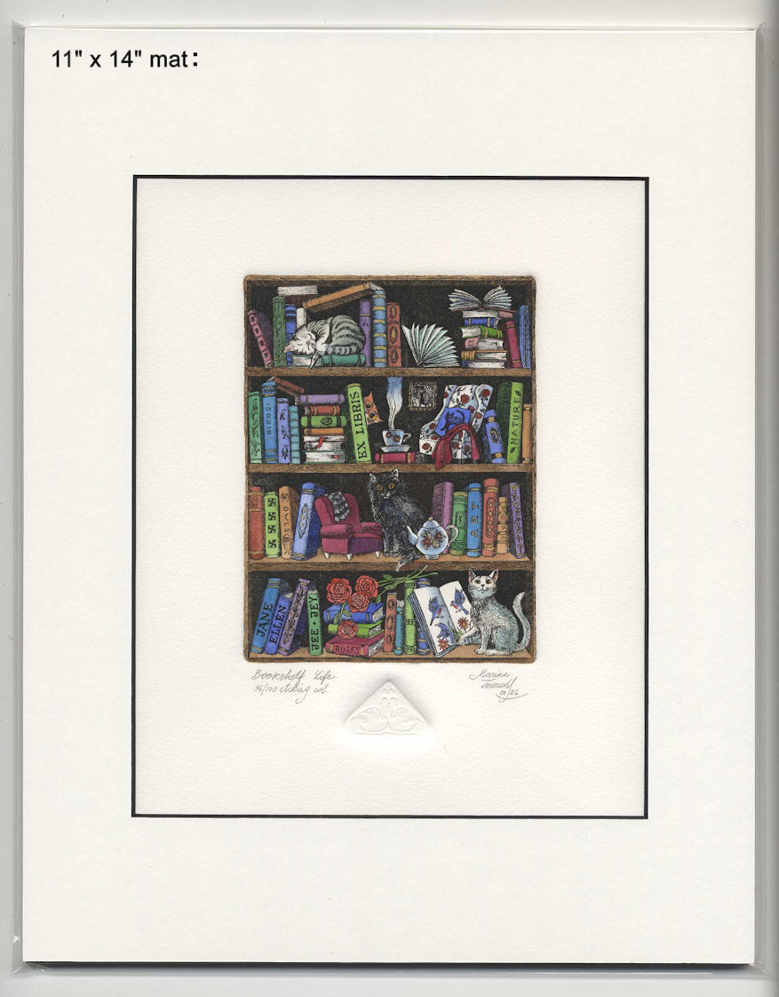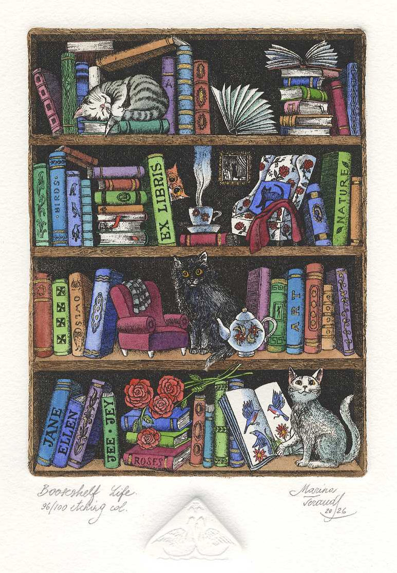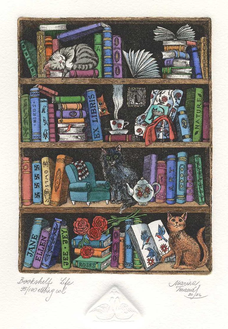 | Bookshelf Life, Ex Libris Jane Ellen, hand-pulled original etchings |