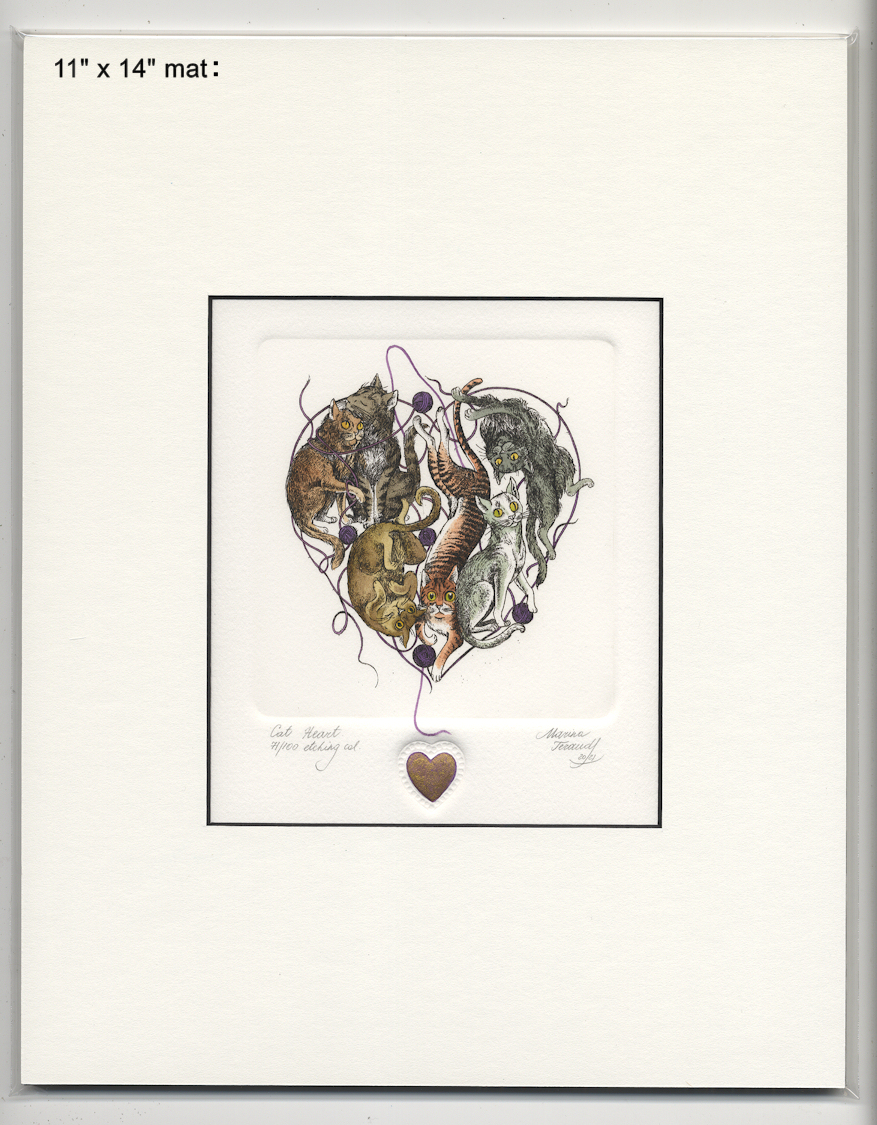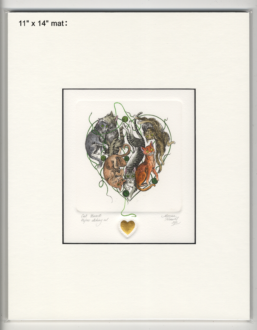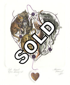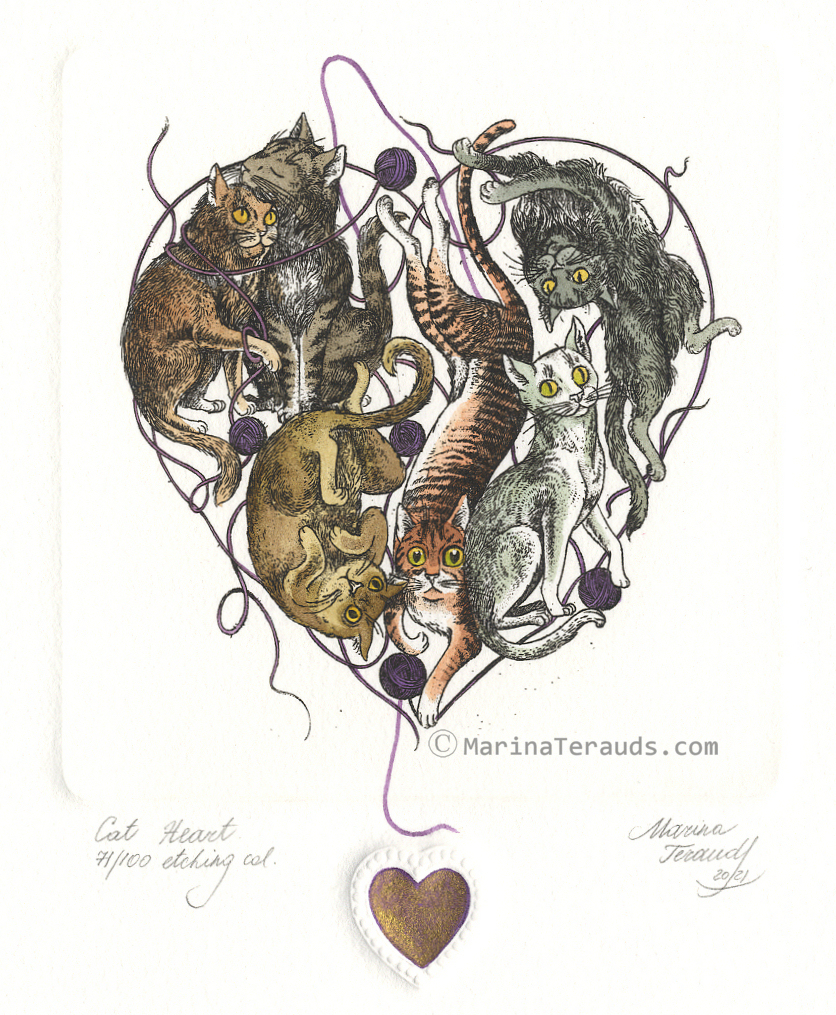 CAT HEART, orginal etchings |