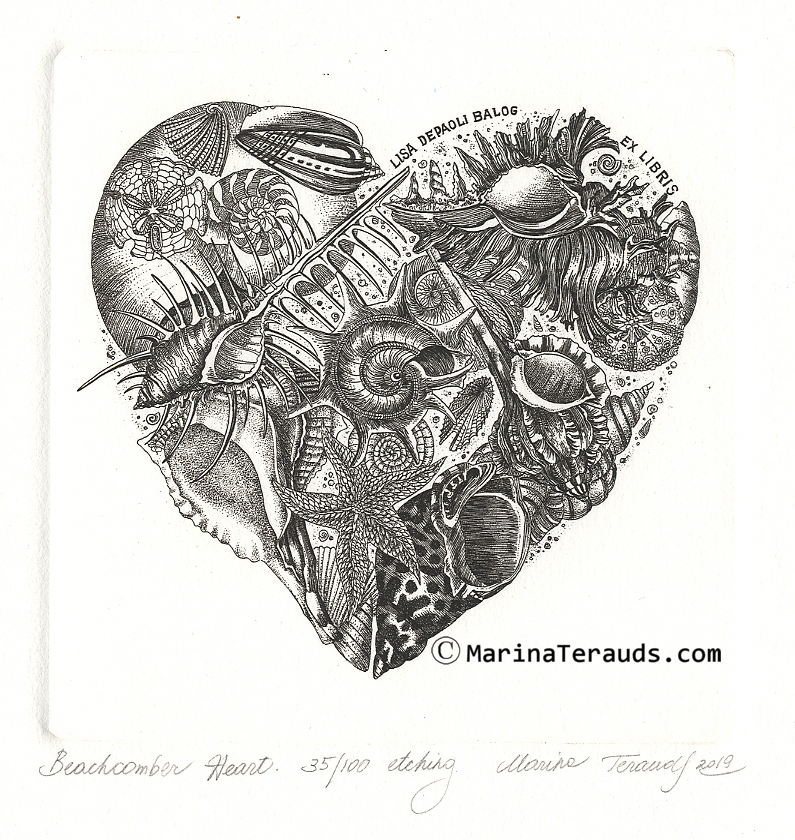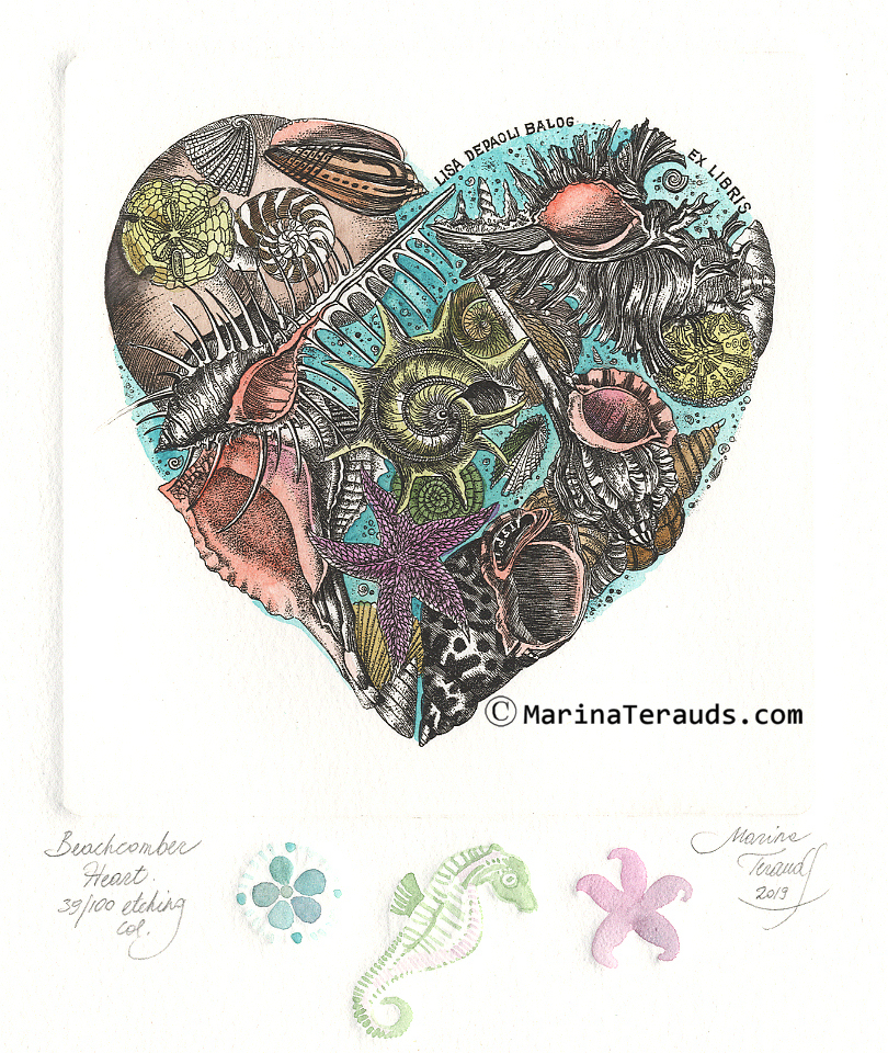 BEACHCOMBER HEART, original ex libris etchings |