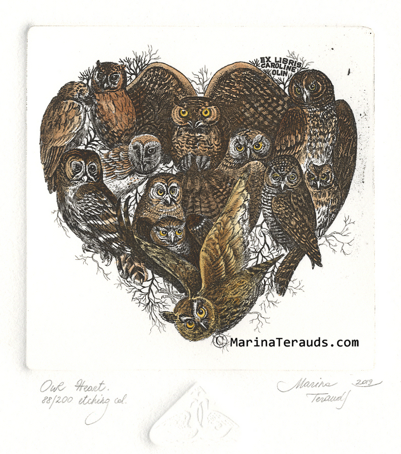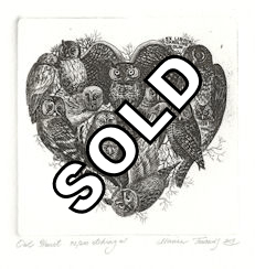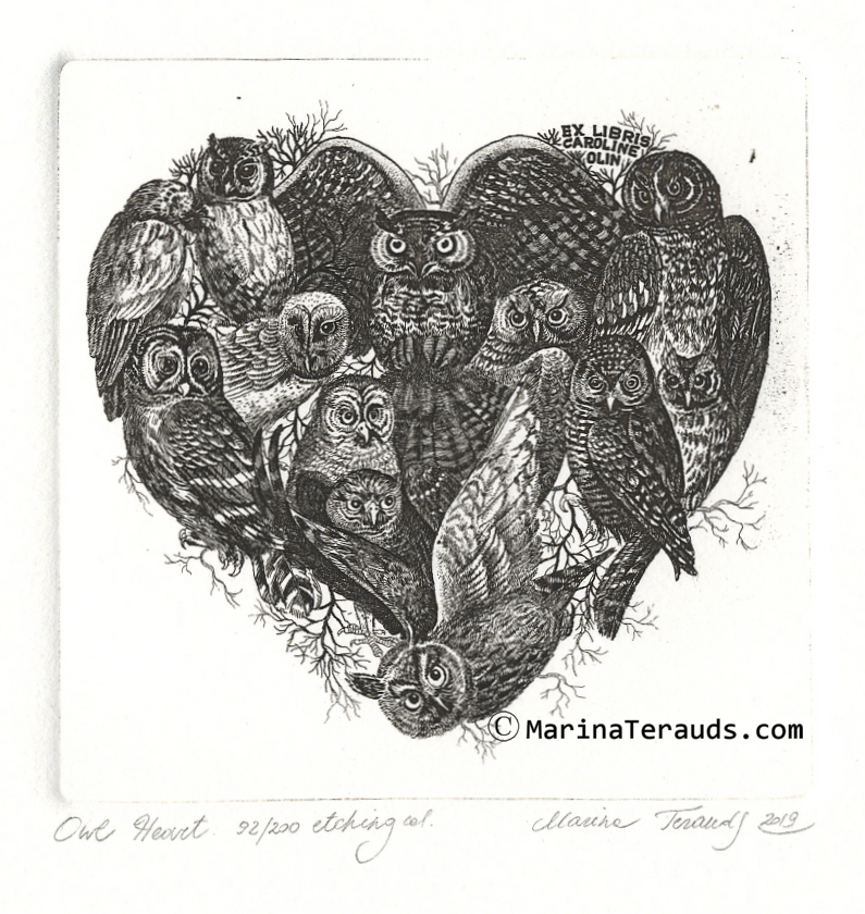 OWL HEART, original ex libris etchings |